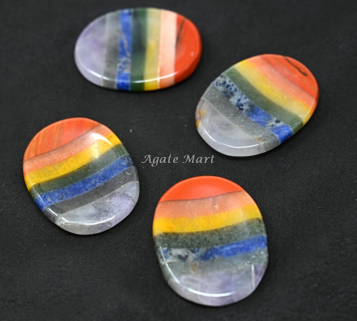 Agate Mart Supplier and wholesaler of all kinds of healing crystals new age metaphysical products buy now 7 Chakra Bonded Worry Stone, Thumb Stones. For your customs stones, size kindly contact to us.