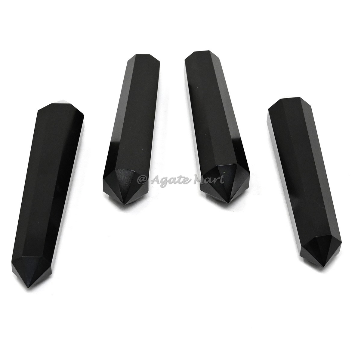 Black Obsidian Double Terminated Point: This is a protection stone, very effective in absorbing negative energies and grounding the user. Its deep black color helps to clarify emotional blockages while building inner strength. It`s great for shielding someone from negativity and spiritual protection.