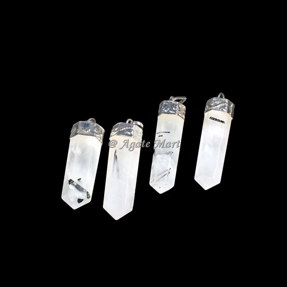 Black Rutile with Silver Cap Faceted Pencil Pendant
