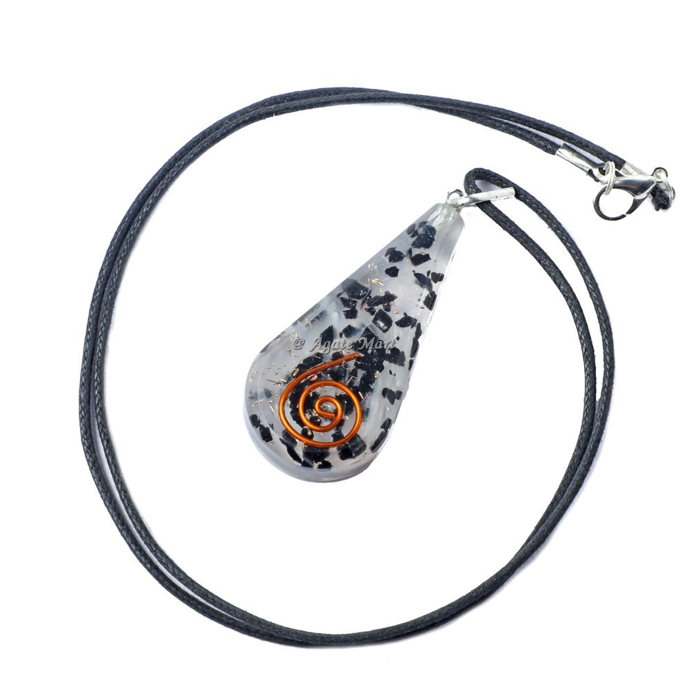 Black Tourmaline Tear Drop Orgone Emf Protection Pendant