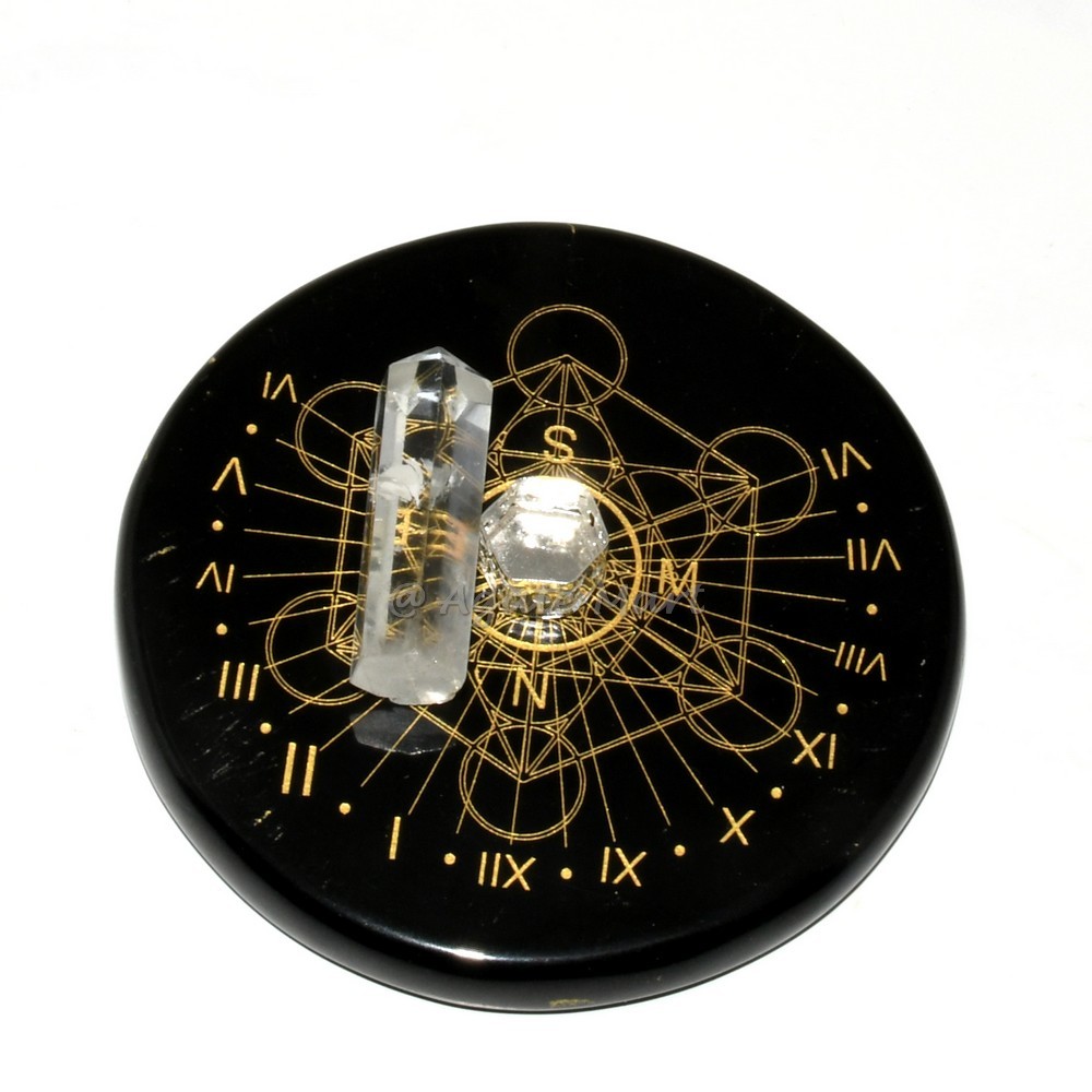 Cosmic Sun Clock with Engraved Metatrons Cube And With A Quartz Pencil