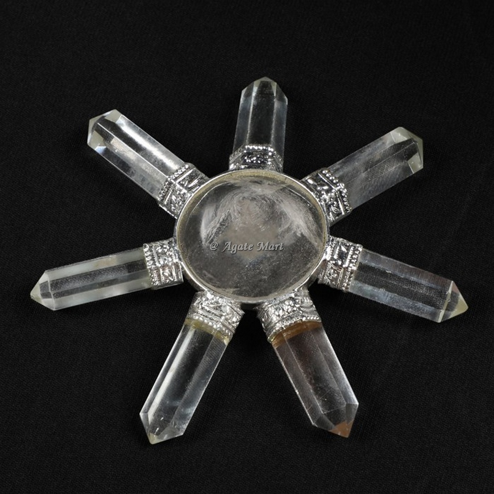 Crystal Healing Energy Generator can be used to remove obstacles and blockages within your aura. Its seven wands, made from Crystal Quartz stones, each correspond to one chakra or energy center in the body. This generator is a powerful tool for healing. The center has a pyramid point crystal quartz stone used for collecting energy or dispersing energy. Each of the 7 crystal quartz points have 6 sides and are pointed with the points also having 7 sides.Order online now.