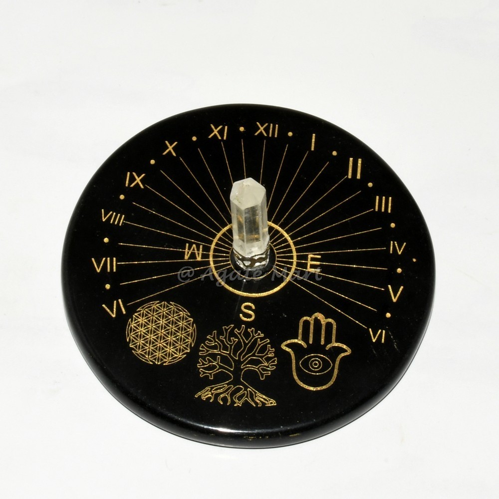 Divine Sun Clock with Engraved Life Symbols And With A Quartz Pencil