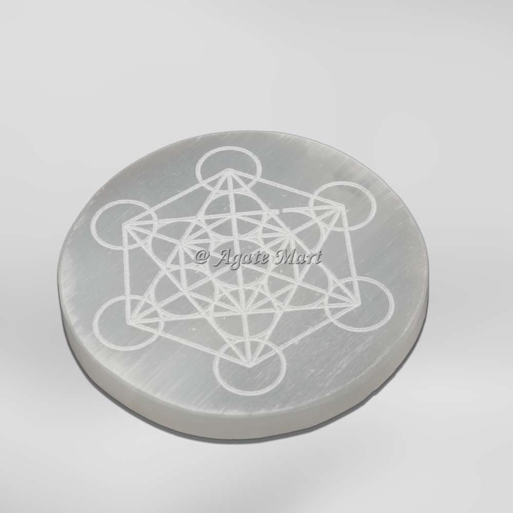 Are you looking for Engraved Metatron Selenite Charging Cercle? Metatron`s Cube can be used as a visual focal point to connect with the archangel, or it can be used as a concentration tool for meditations that promote peace and balance. Selenite calms and soothes, bringing a deep peace and sense of tranquility. Selenite is a crystallized form of Gypsum, which is used for good luck and protection. The powerful vibration of Selenite can clear, open, and activate the Crown and Higher Chakras and is excellent for all types of spiritual work. The translucent white nature of Selenite represents spiritual purity, light, and connection to the angelic realms. It is one of the most sacred crystals throughout history. The name `Selenite` derives from the Greek goddess Selene, the goddess of the moon.