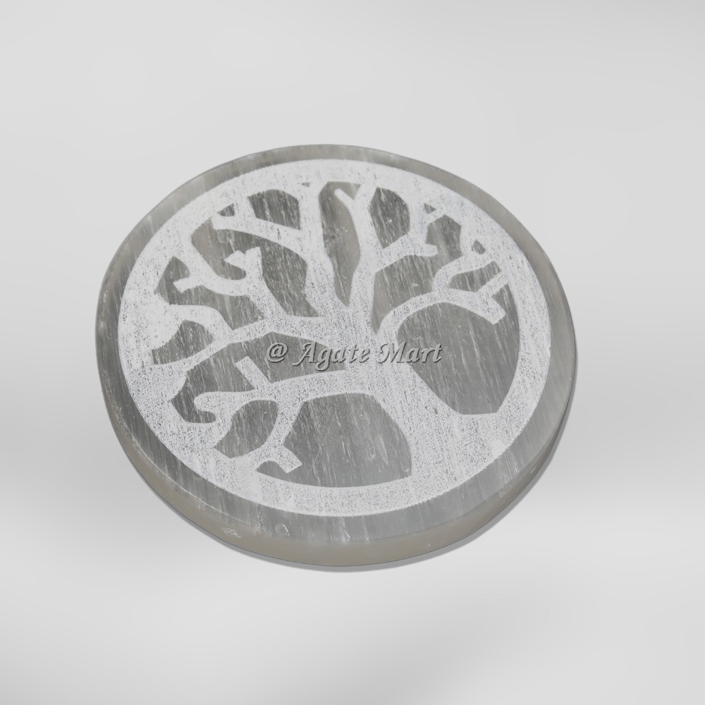 Engraved Tree Of Life Selenite Charging Plate