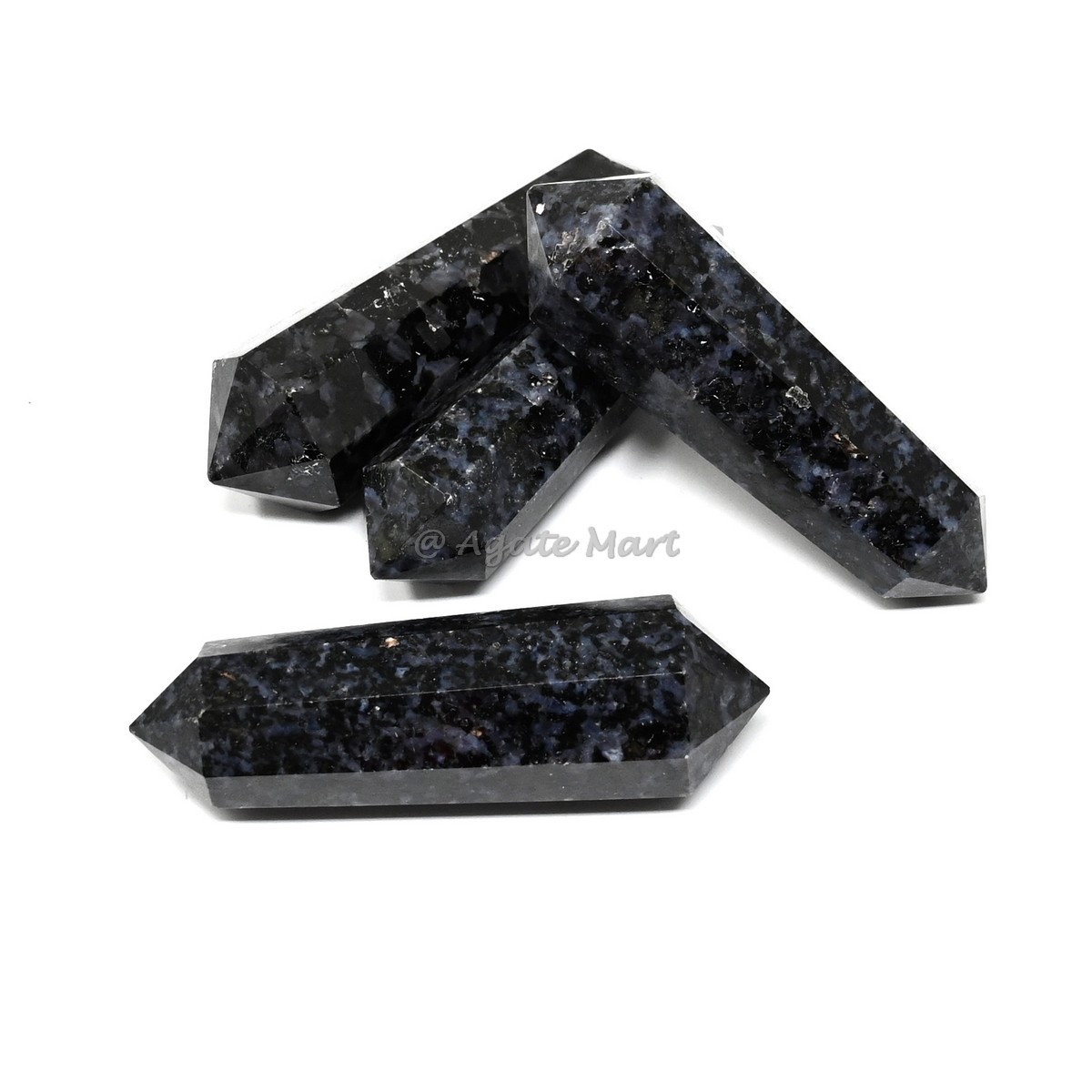 Mystic Merlinite or indigo Gabbro Double Terminated Point has an unconscious mystical appearance, used for spiritual insight and awakening, which helps expand consciousness and embrace transformation with its perfect formation looking into meditation implied as touching higher realms and personal growth.