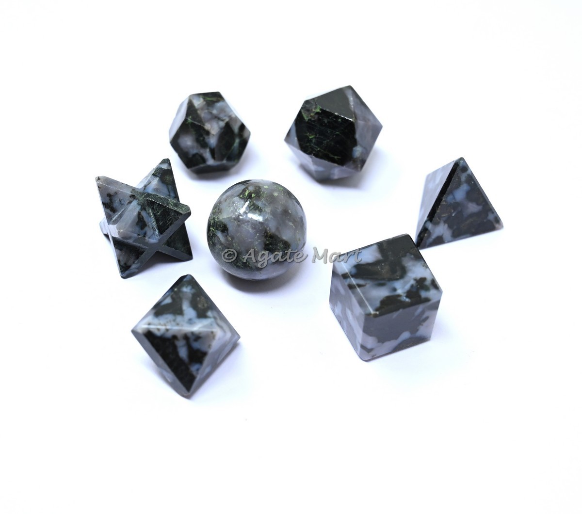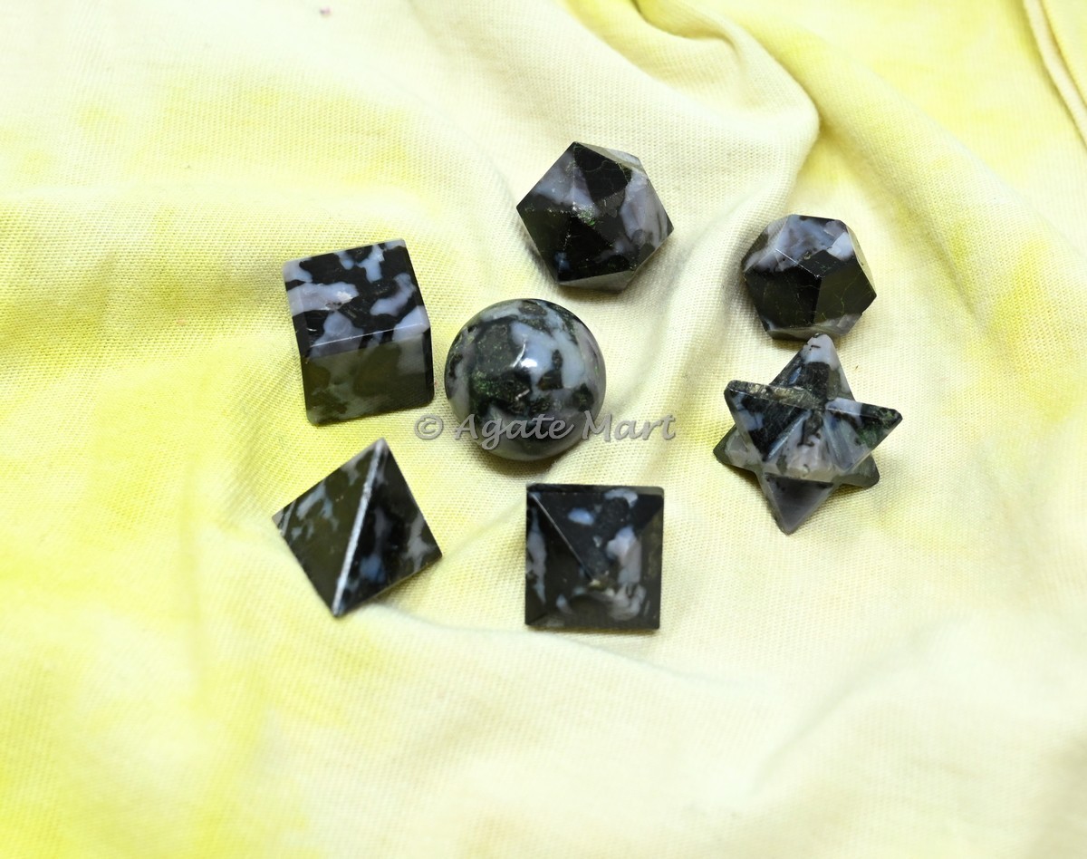 We are the supplier of healing crystals and we supply our customers best quality product. We have a collection of sacred 7pcs geometry set you can see our collection by visiting our website www.agatemart.com. Now let you get A detailed description about Moss agate, Moss Agate is said to encourage tranquility and emotional balance. Moss agate is the perfect stone for those who experience strong aggression or overly nurturing emotions, helping to balance male and female energies whenever they become too extreme. We are sure that you will not get dissapointed by buying our any products.