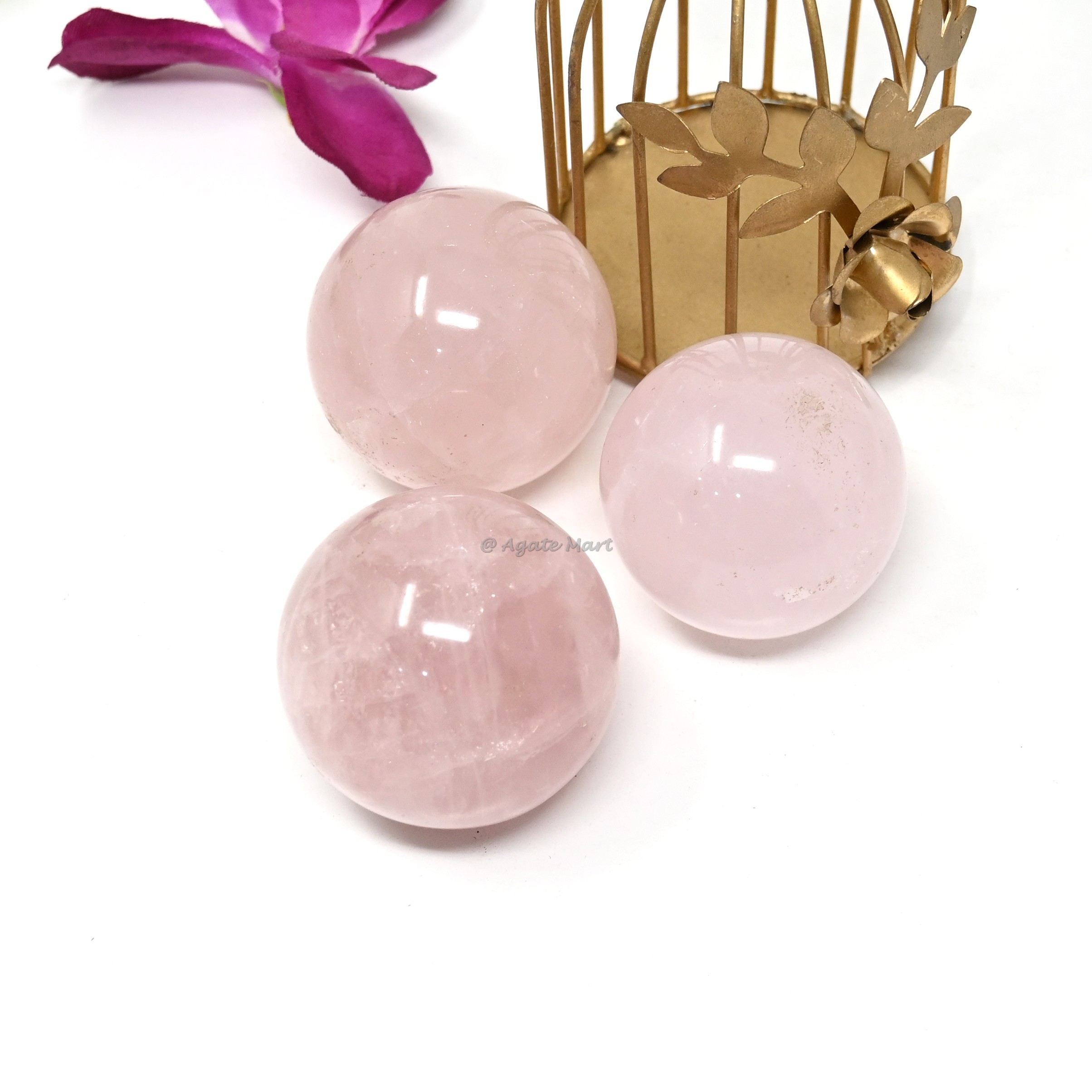 Get unique Rose Quartz Gemstone Sphere at affordable prices from Agate Mart. Rose Quartz is the stone of unconditional love. It opens the heart to compassion for self and for others, and raises self-esteem. Rose Quartz eases guilt and balances emotions, lowering stress and bringing peace. Use Rose Quartz to enhance positive self-affirmations.