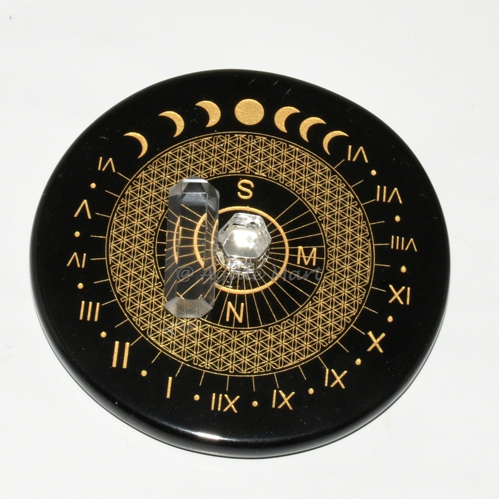 Sacred Sun Clock with Engraved Flower of Life and Moon Phases And With A Quartz Pencil