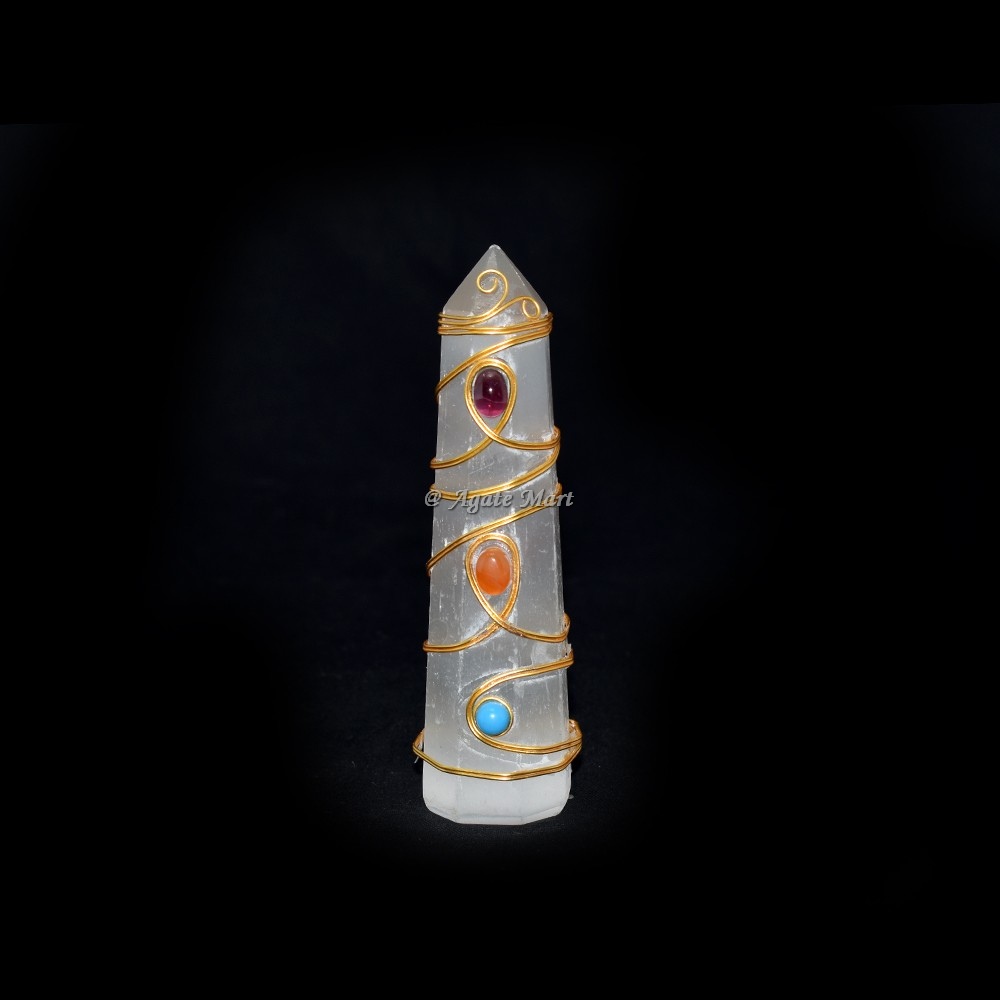 Selenite Wrapped With Garnet Carnelian Faceted Obelisk