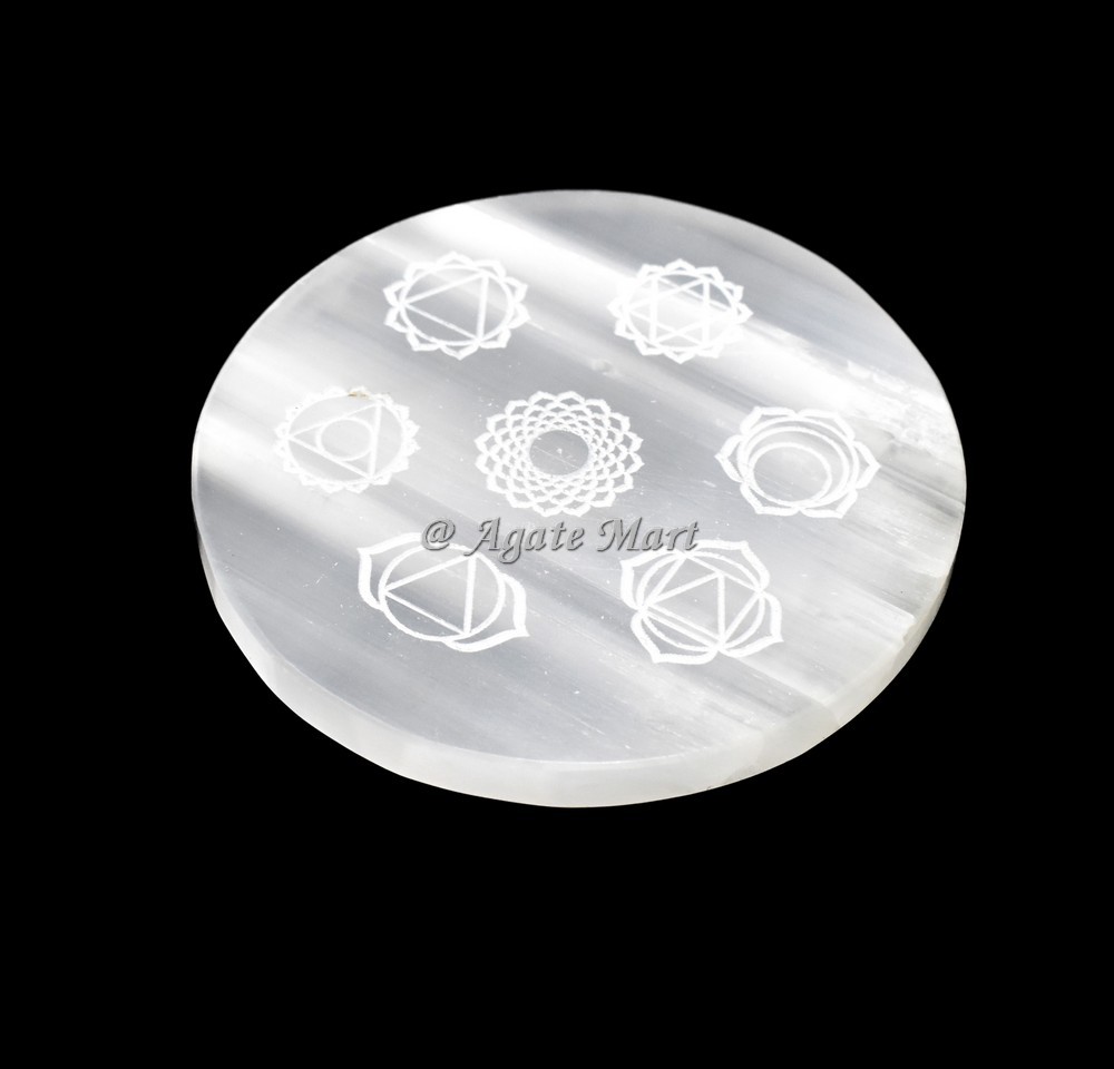 Seven Chakra Symbol Engraved Selenite Charging Plate