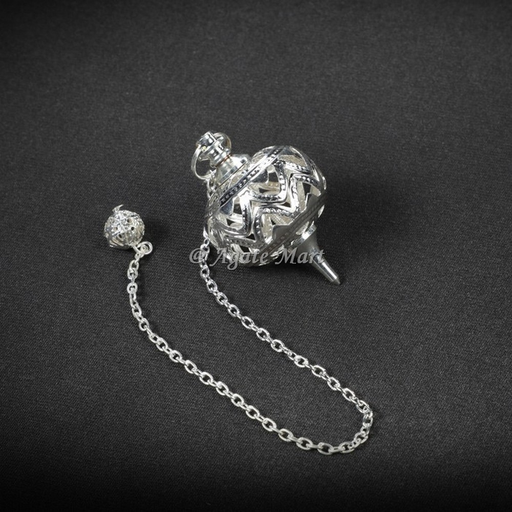 We offers the best collection of Silver Brass Designable Cage Dowsing Pendulum at affordable price. Silver Brass Designable Cage Dowsing Pendulum are used for peace of mind, Meditation , Healing and also this is used for positive energy. This is the powerful pendulums that save from negativity and black magic. Place the order today.