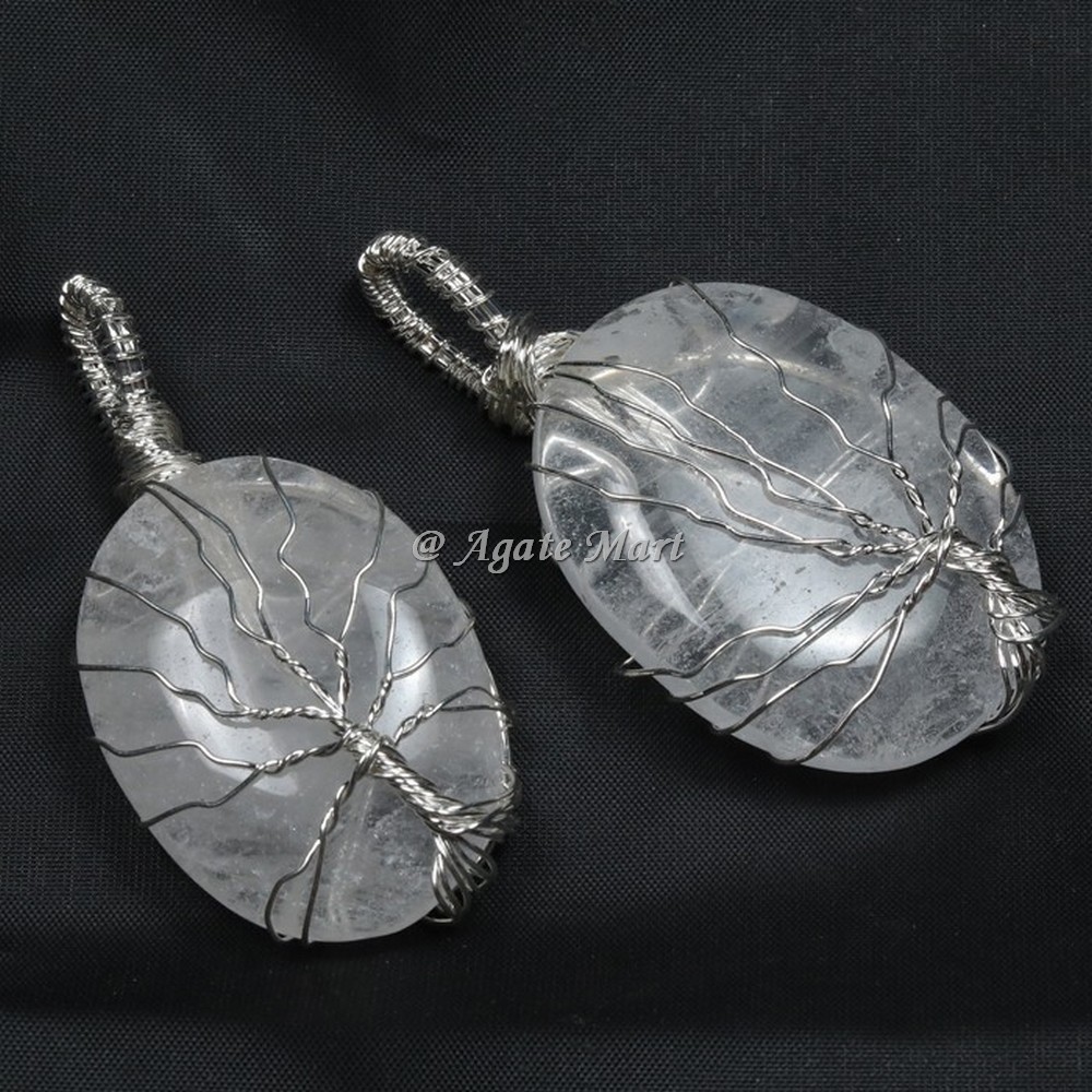 Buy highly polished Tree Of Life Crystal Quartz Pendants at Agate Mart. Crystal quartz is highly prized for its ability to clear the mind of negativity to enhance higher spiritual receptiveness. It is considered the master of all healing crystals due to its ability to magnify or amplify healing vibrations of other crystals. It enhances psychic abilities. It aids concentration and unlocks memory. Stimulates the immune system and brings the body into balance. Tree of Life is a Symbol of Strength and Courage. Tree stands uproot even in strong winds thus giving us a lesson and motivates us in taking courage in our daily lives. Tree of Life Pendants helps us in increasing one`s morale and confidence. Order online now.