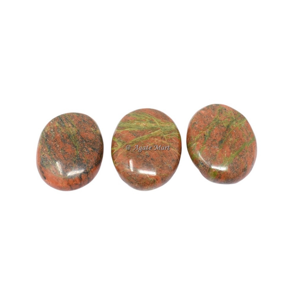 Here is the best deal on Unakite Palm Stones. Check out our Unakite Palm Stones selection for the very best in unique or custom, handmade pieces from Agate Mart. Each of these Unakite Palm Stones is unique, some longer and thinner, some shorter and fatter. This Unakite Palm Stones is the most powerful healing stone of the mineral kingdom, able to work on any condition. This is known as the stone of power and amplifies any energy or intention. Clear protects against negativity, attunes to your higher self, and relieves pain. Pendulums can be used to tap into the your subconscious, as they help you to access your inner guidance. Using Unakite Palm Stones, you hold the small end in your hand, remaining very still, and ask a yes or no question. Agate Mart is best online Supplier of Unakite Palm Stones at Wholesale Price.