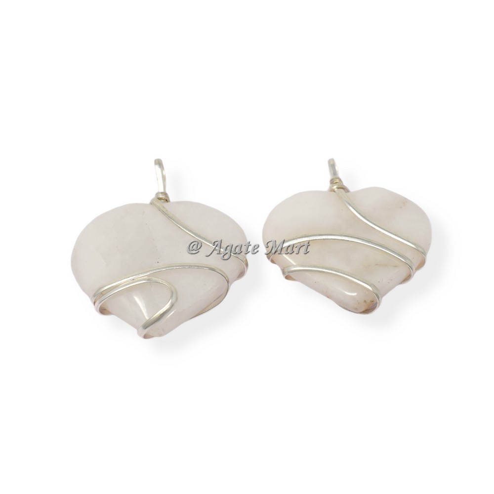 White Agate Heart Wire Wrap Pendant has multiple uses. It Can be used for meditation, Healing , Reiki. white king agate tumbled are beneficial for Laxmi Poojan. You can Keep it in your temple/ Work place. The white king agate tumbled can be used for jewelry making. White Agate is an interesting stone that comes with milky white color and patterns or bands. On the Mohs scale of hardness, it has a rating of 6 which is good for making all types of jewelry. In most cases, we find white agate as tumbled stones, bracelets, rings or brooches. Price and grade quality is dependent on the inclusions and patterns inside the stone. White agate with less than 10% of matrix inclusions is considered as the best while stones with more patterns are considered less quality. Order online now for White Agate Heart Wire Wrap Pendant at low prices from Agate Mart.