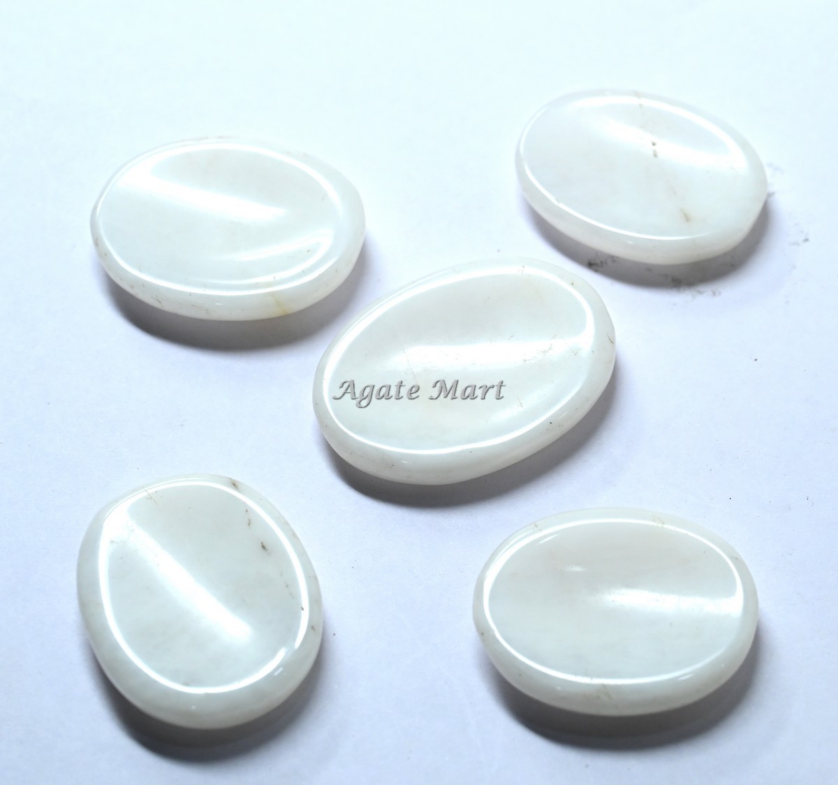 Agate Mart Supplier and wholesaler of all kinds of healing crystals new age metaphysical products buy now White Agate Worry Stone, Thumb Stones. For your customs stones, size kindly contact to us.