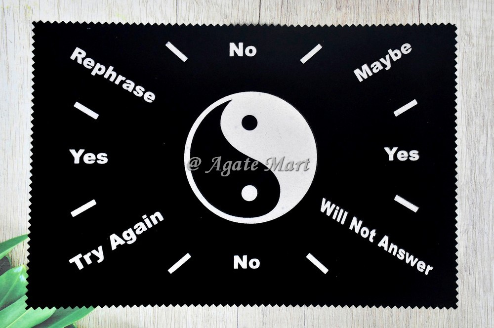 Are you looking for Ying Yang Creative Altar Pendulum Mat For Pendulum Divination at low prices? Agate Mart is supplier and wholesaler of Ying Yang Pendulum Divination Mat. It is a highly protective and stabilizing stone, useful for grounding and harmonizing spiritual energy. When working with the upper Chakras, it increases intuitive abilities, links the human mind to universal consciousness, and develops connection to Spirit. Pendulums are often used as tools for spiritual healing and inner growth. Pendulum met will swing back and forth or in a circular motion. A pendulum works by converting energy back and forth, a bit like a rollercoaster ride. It repeatedly switches its energy back and forth between potential and kinetic. Order online now.