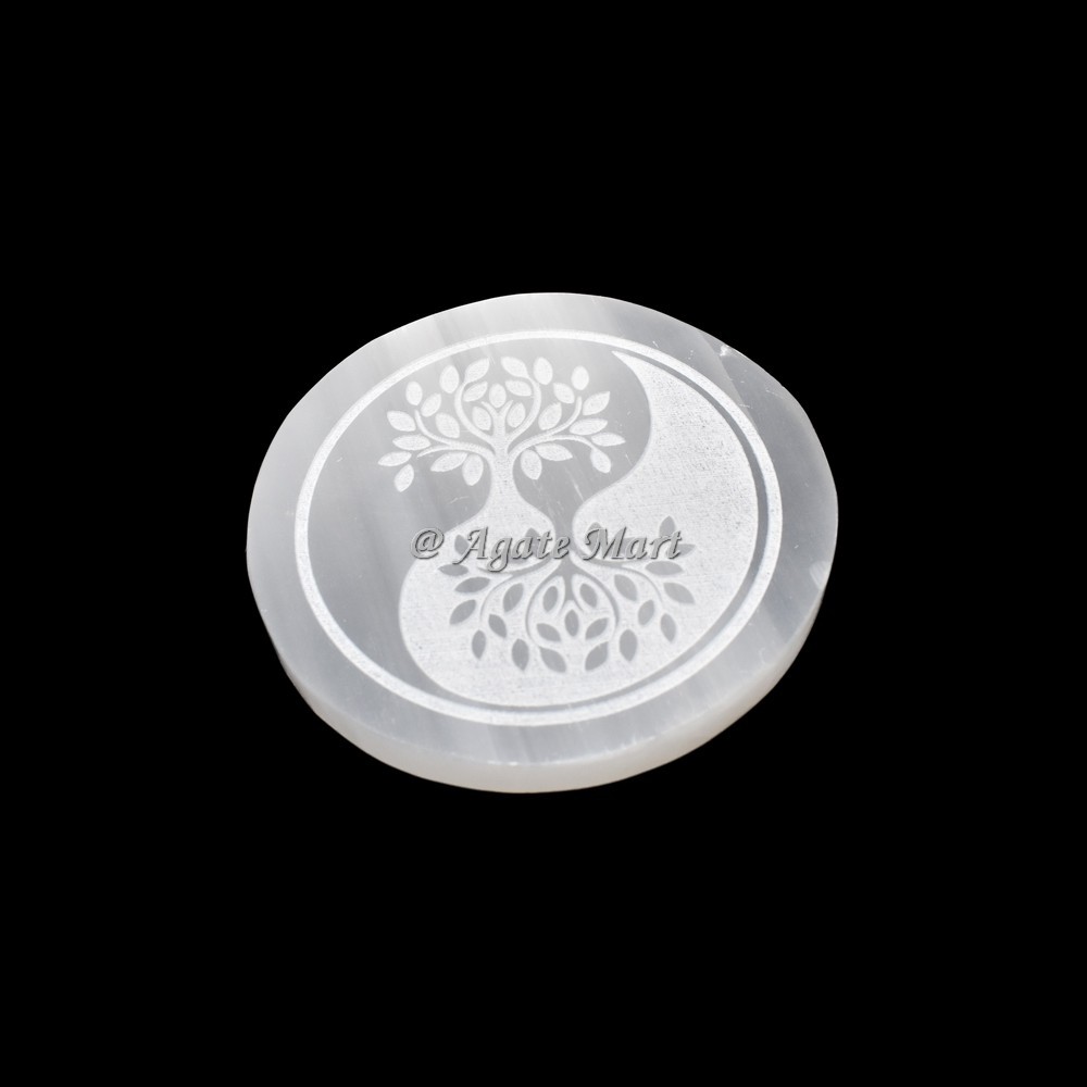 Agate Mart is offering Selenite Tree of life Healing Charging Disk online at low price. It is a very gentle stone that provides a sense of calm to the holder and helps to balance energy and happiness. This stone helps you to see the positive in any situation and guide you to a sense of inner strength you might not have known was there. It is also lucky especially when playing games like cards. Selenite is a crystallized form of Gypsum, which is used for good luck and protection. The powerful vibration of Selenite can clear, open, and activate the Crown and Higher Chakras and is excellent for all types of spiritual work. Selenite can also be used to strengthen the memory. Selenite, also known as satin spar, desert rose, or gypsum flower are four crystal structure varieties of the mineral gypsum. These four varieties of gypsum may be grouped together and called selenite. These Selenite charging disks are beautiful with amazing energy.