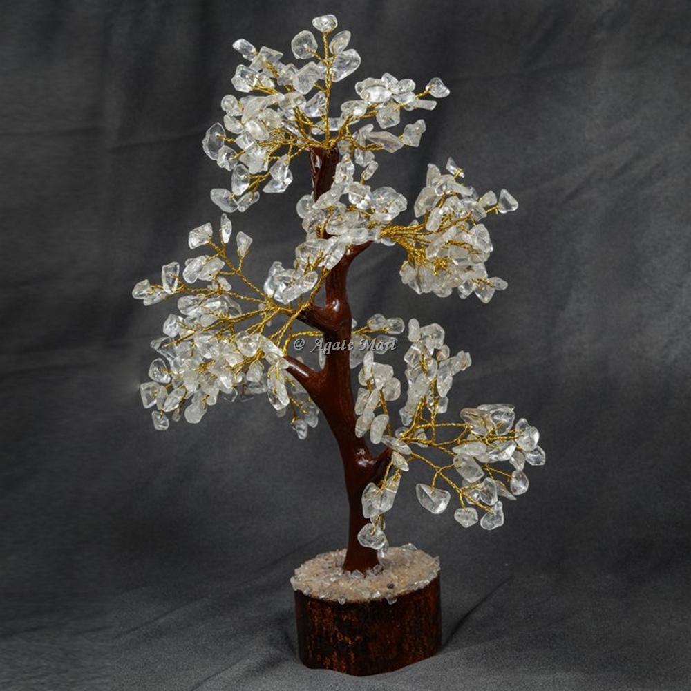 Buy Crystal quartz Mseal 300 Chips Gemstone Golden wire Tree Online at low prices. The celestial looking Chips Tree is available at Agate Mart in the size ranging from 7-8 Inch. The translucent crystals quartz is finely placed with the help of Silver plated branches. The translucent crystals are beautifully embedded on the pedestal. The tree makes for an excellent gift and a home/office decor. For placing special order for crystal quartz Mseal 300 Chips Gemstone Golden wire Tree contact us directly.