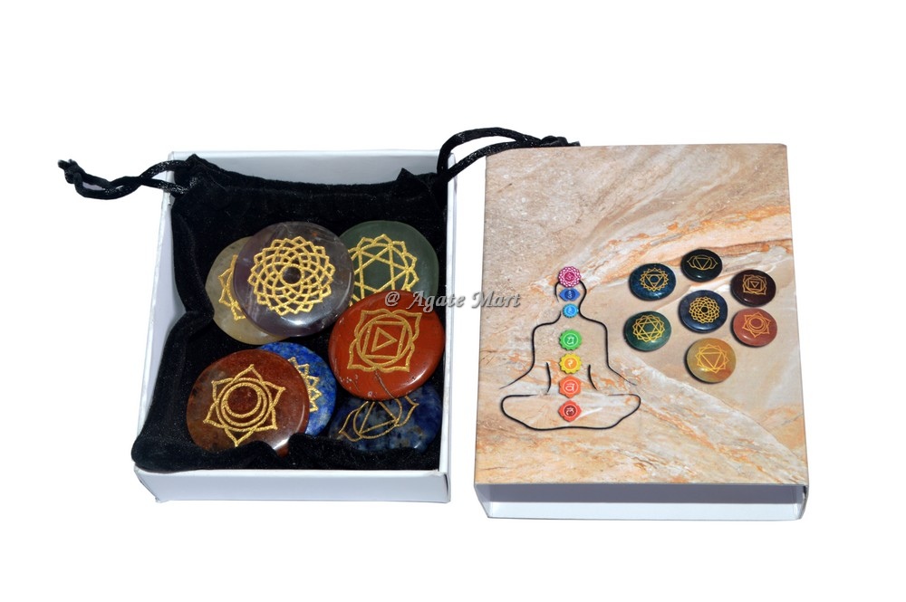 Buy Engraved Round Seven Chakra Set With Printed Box online at affordable prices. It gives the calming, protection of negativity and healthy life. This amazing Engraved 7 Chakra Set with Printed Box is available in 3D design. Exclusive Collection of Engraved Round Seven Chakra Set With Printed Box online at affordable prices only at Agate Export. It gives the calming, protection of negativity and healthy life. This amazing Engraved 7 Chakra Set with Printed Box is available in 3D design. This 3D designs slice coaster is used for small cup and Coffee or tea cup. Place the order as soon as possible.